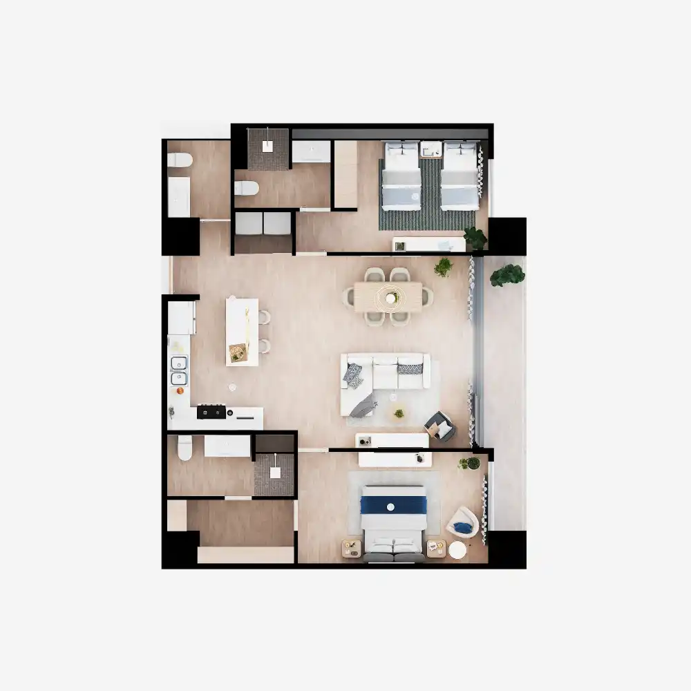 Explore nuestras tres tipologías de apartamentos, concebidas para adaptarse a diferentes estilos de vida, ya sea que usted busque un hogar para su familia o una inversión inmobiliaria en una de las zonas más exclusivas de Tegucigalpa, Honduras.